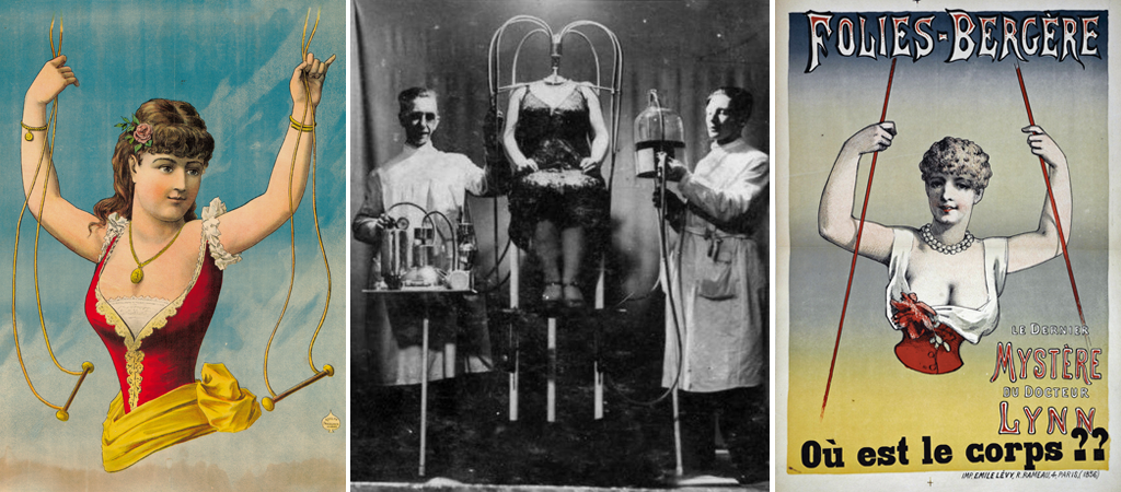 Eine ähnliche Illusion ist „Fatima, die Dame ohne Unterleib“. Hier ruht der gesamte Körper einer lebendigen Frau auf einem Tisch, nur die Beine sind nicht zu sehen. Gerne gezeigt wurde auch eine weitere „Dame ohne Unterleib“ mit dem Namen „Thauma“, die ohne Beine auf einer Schaukel sitzt. Basierend auf dem Prinzip des „schwarzen Kabinetts“ hat diese Illusion Dr. Hugh Simmons Lynn (1836-1899) erfunden. Als Grundlage zu all diesen Illusionen kann man die klassische „Sphinx-Illusion“ nennen, die im Jahr 1864 von Thomas W. Tobin erfunden wurde. Hier wird ein menschlicher Kopf ohne Körper auf einem Tisch präsentiert. Hier kommen V-förmig angeordnete Spiegel zum Einsatz die sich in einem Winkel von 90 Grad treffen, wobei die Spitzen beider Spiegel zum Publikum zeigen und die Seitenwände der Außenumgebung gespiegelt werden.
